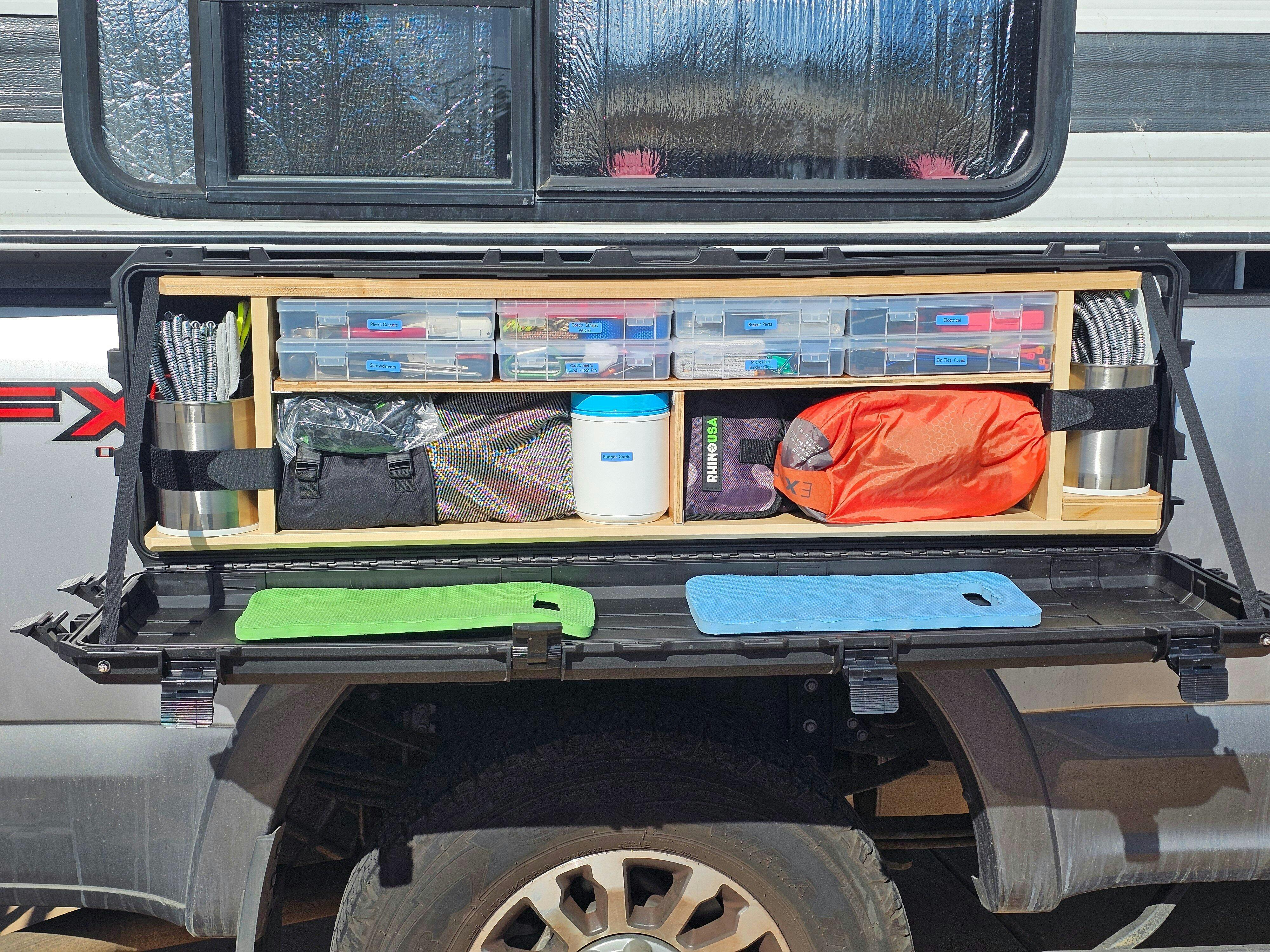 The Large Hardcase is compatible with 2x 6x7" MOLLE or the 48x10" MOLLE. It's the golden ticket to expanding the storage capacity of your truck without sacrificing valuable bed space. Easy-access storage that works with cappers, truck campers, tonneau covers, and bed racks. Whether you’re a contractor, adventurer, or weekend warrior, this system adapts to your needs and grows with you.